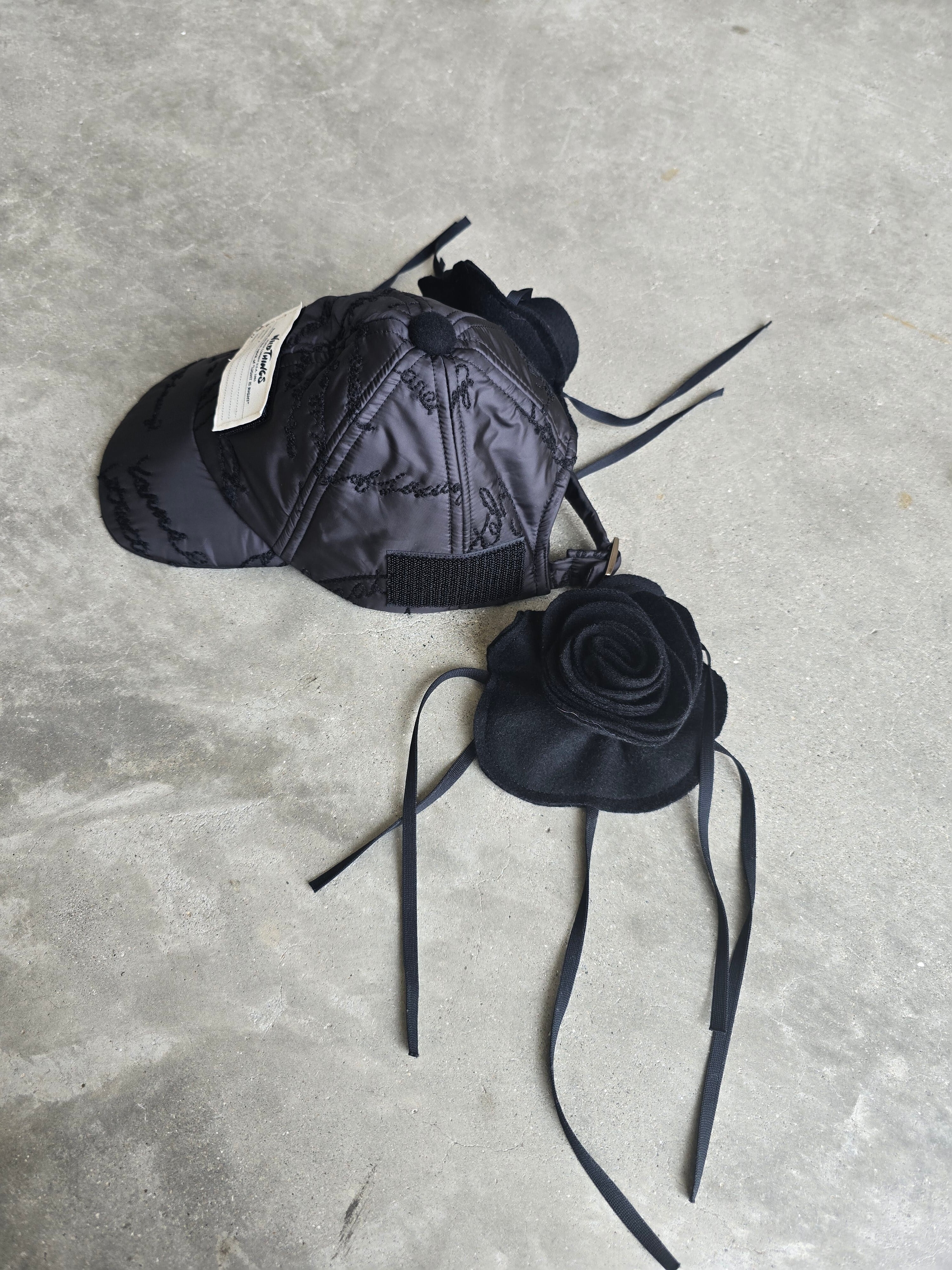 耳元にはバラのコサージュが付いた、特別感のあるキャップに仕上がっています。