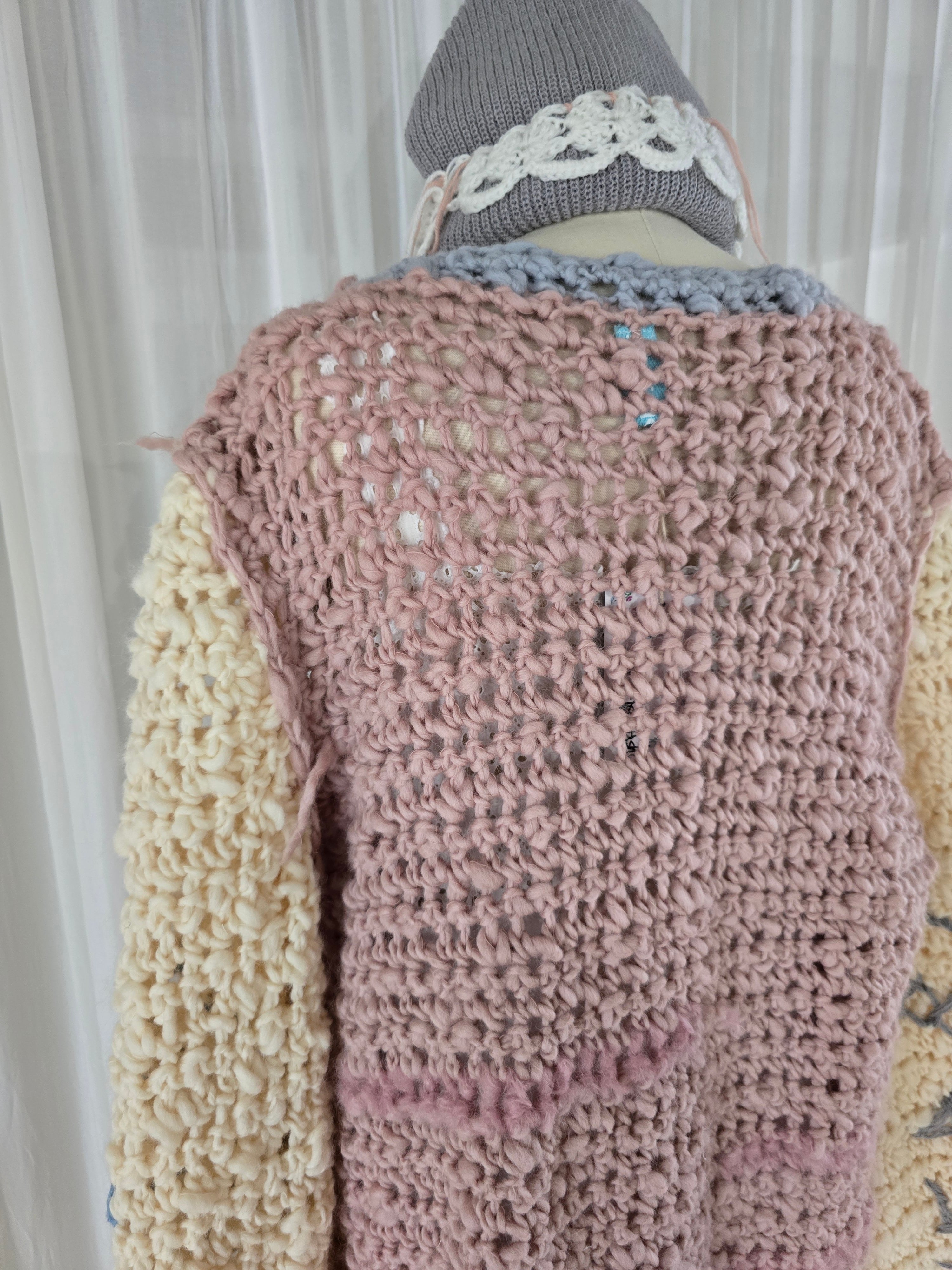 ざっくりと太い毛糸で編まれたニットジャンパー。