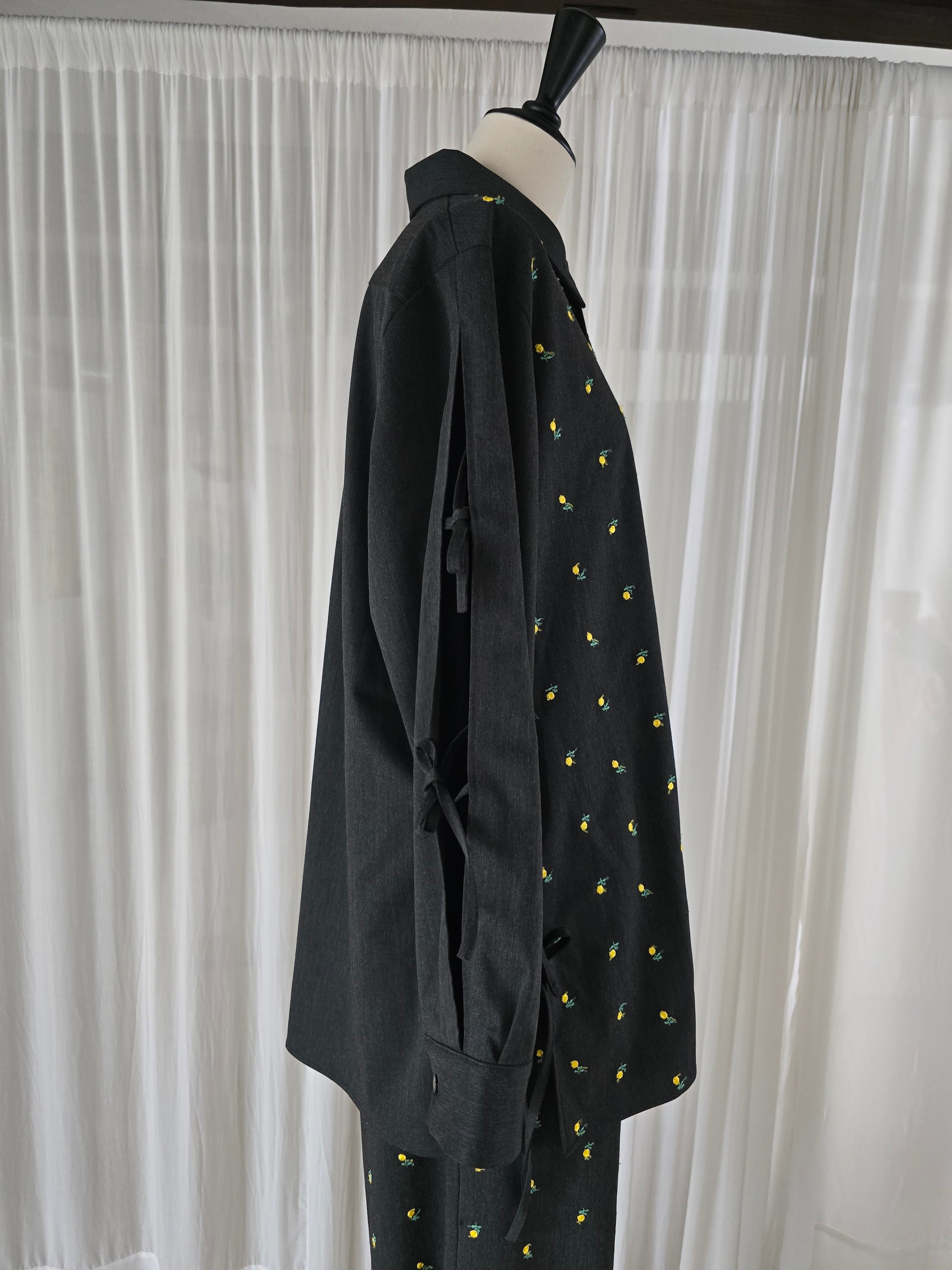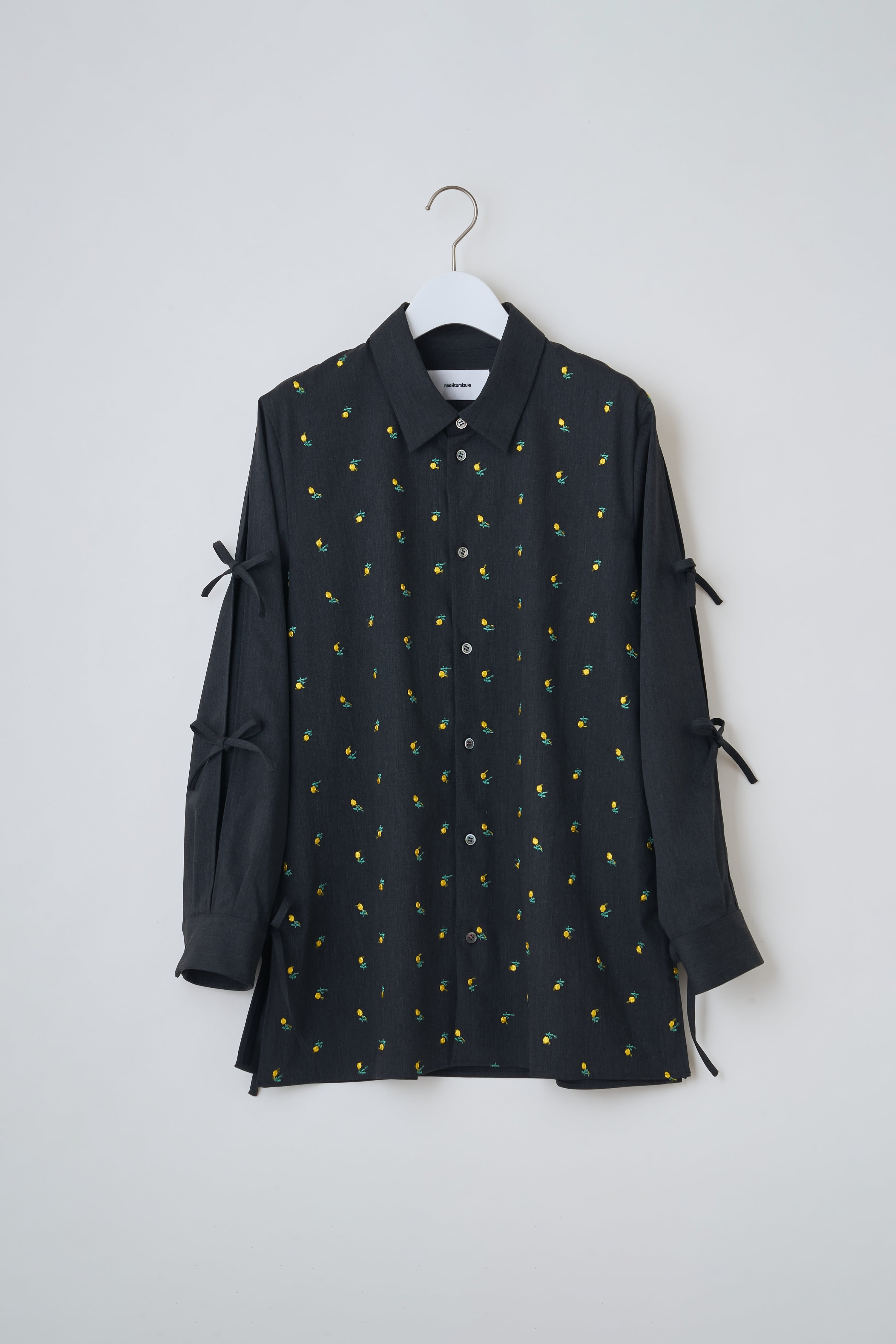 naoki tomizuka オリジナルの黄色い小花柄刺繍を施したざっくり大きめシャツ。