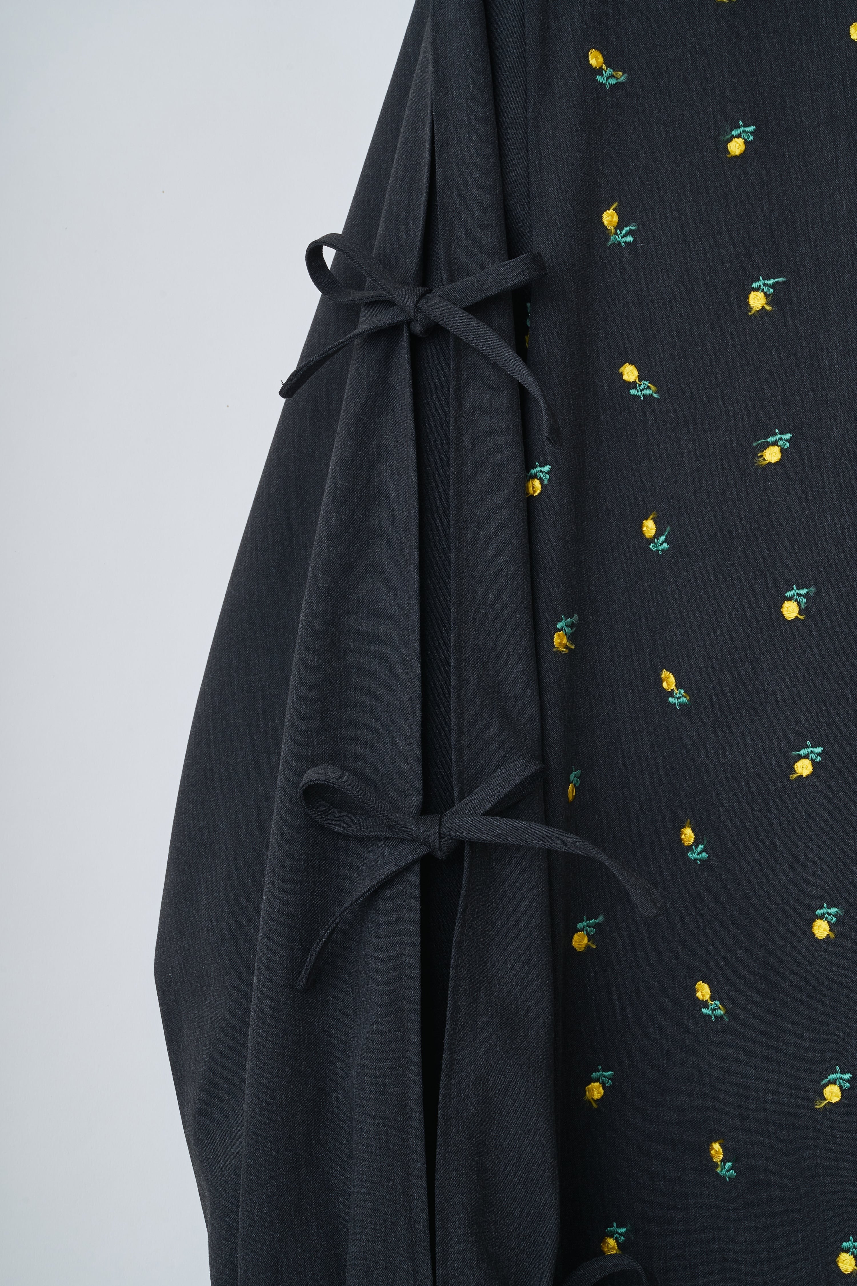 両サイドのスリットリボンと、袖部分のリボンデザインが特徴的。