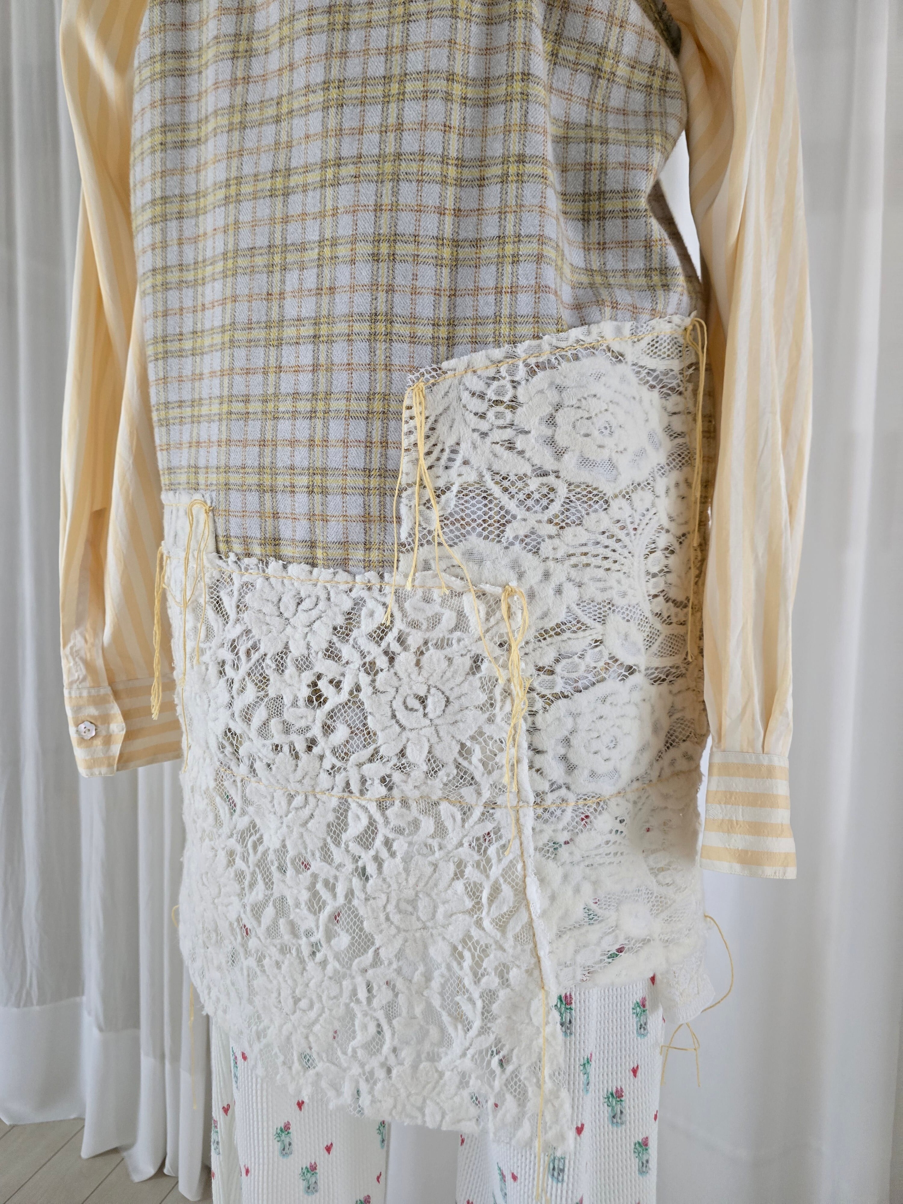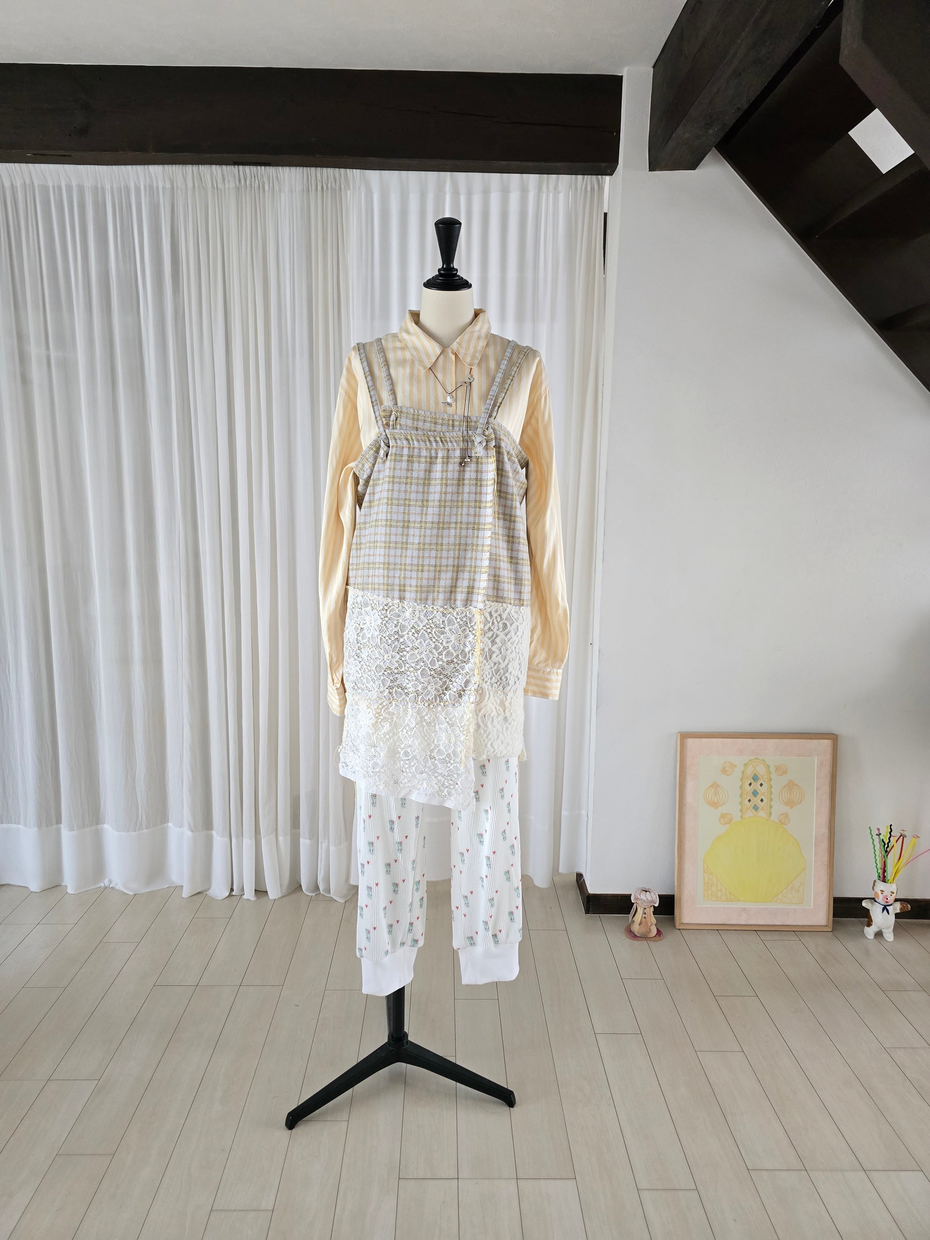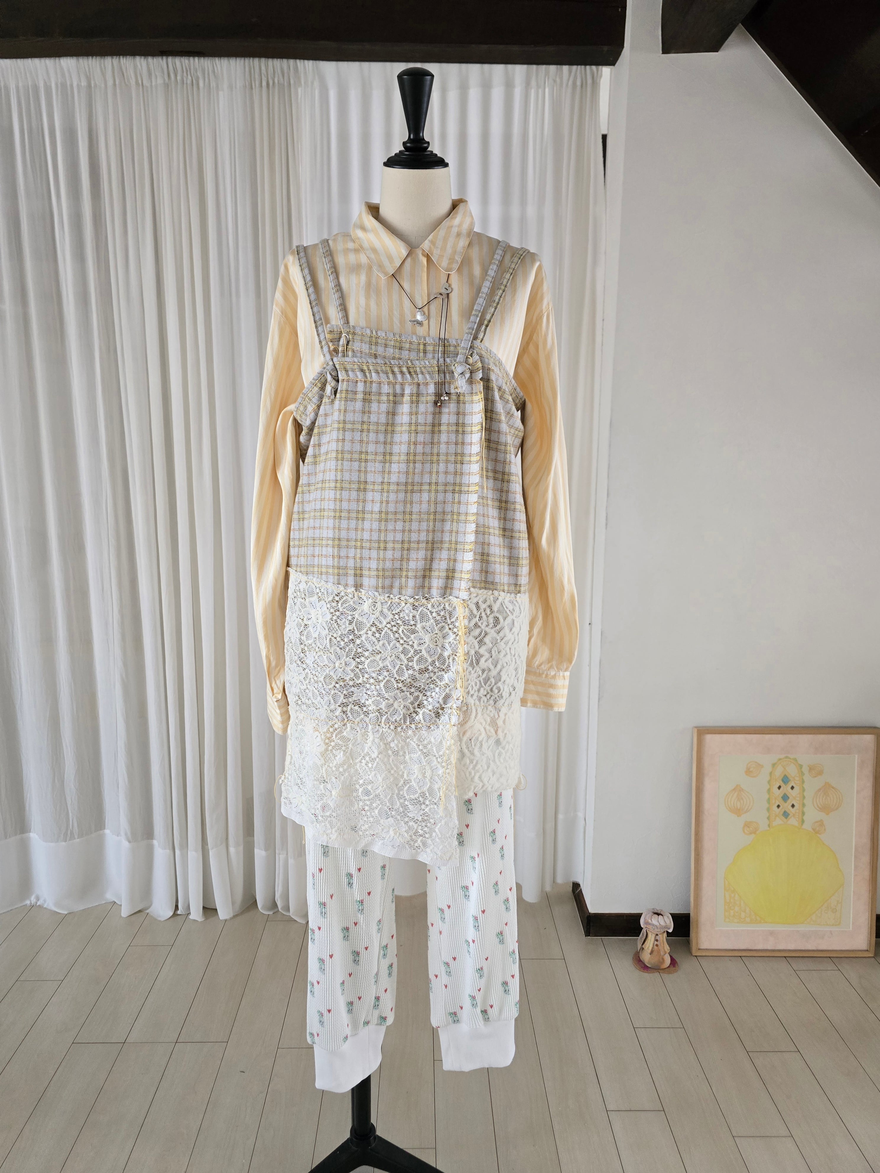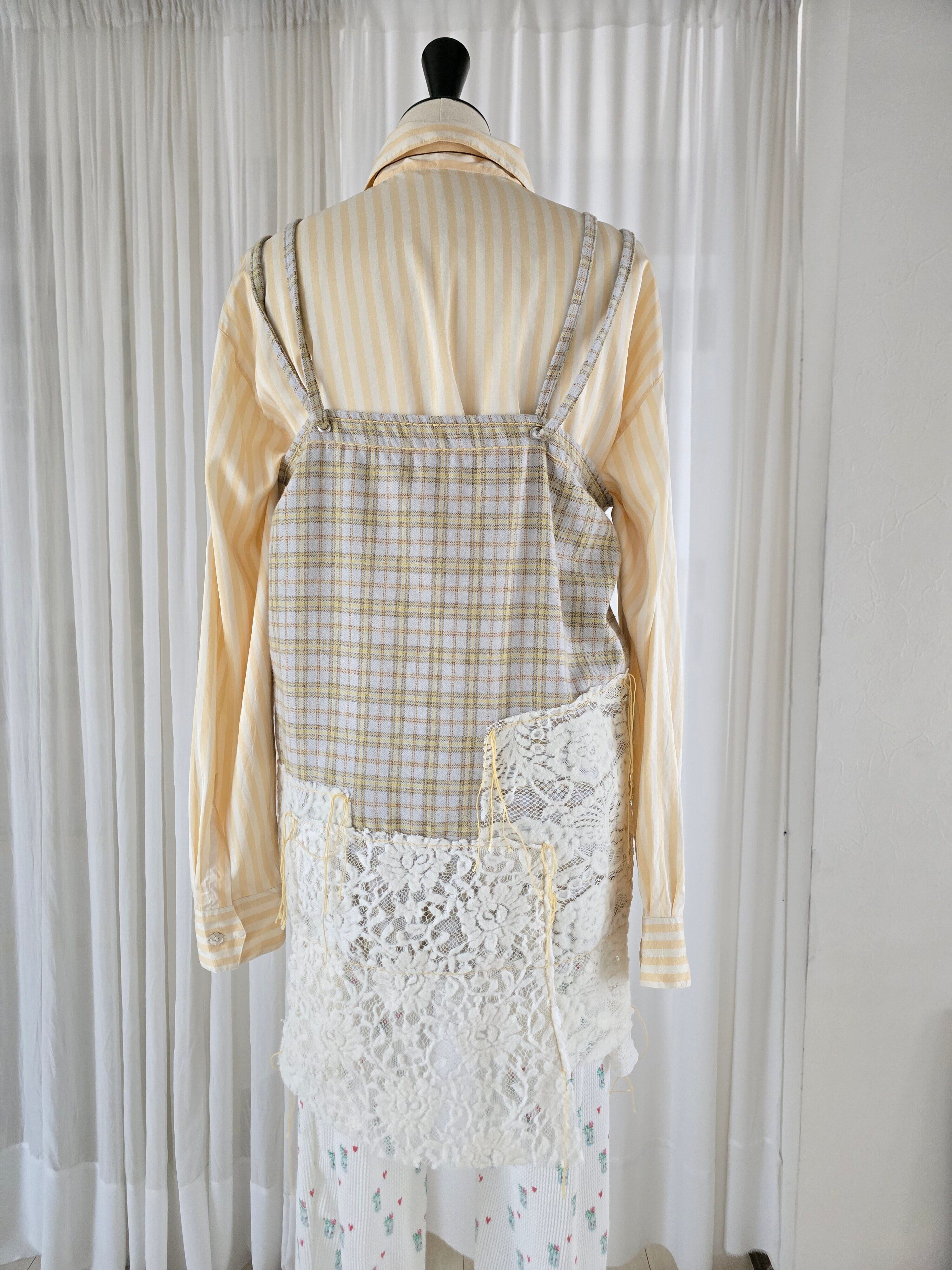 モコモコのレースとプレーンレースのパッチワークを施したキャミソールショートドレス。