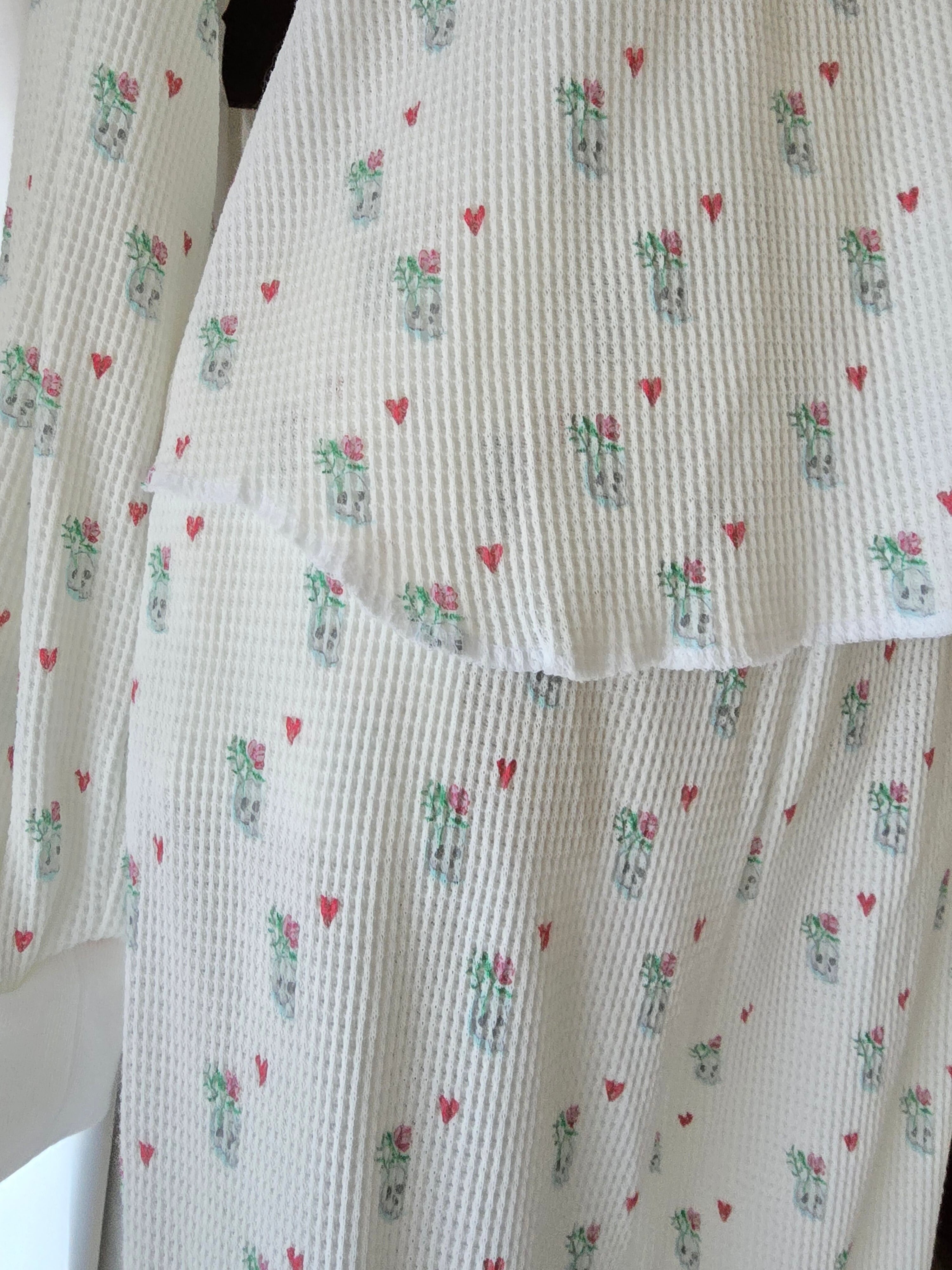 ドクロとハートの柄のサーマル素材です。