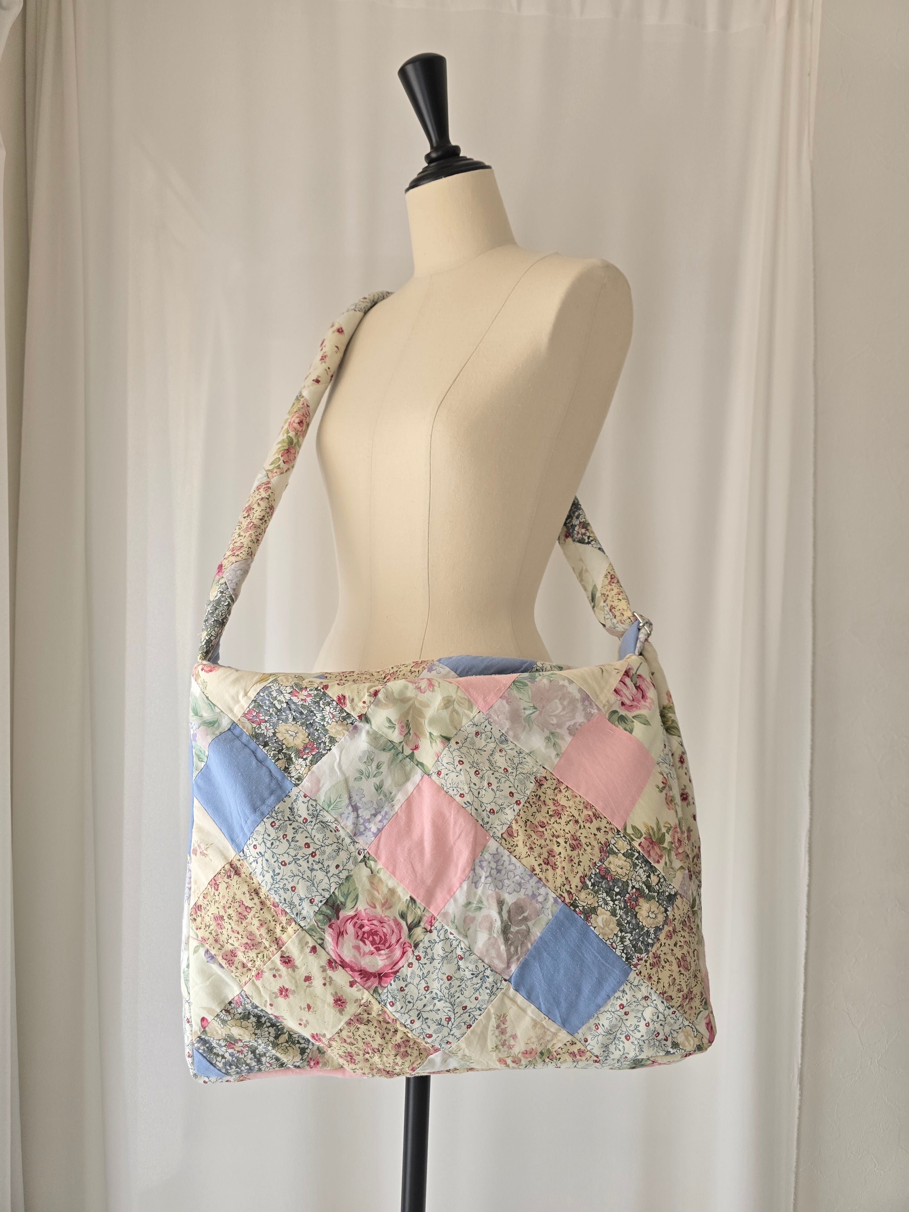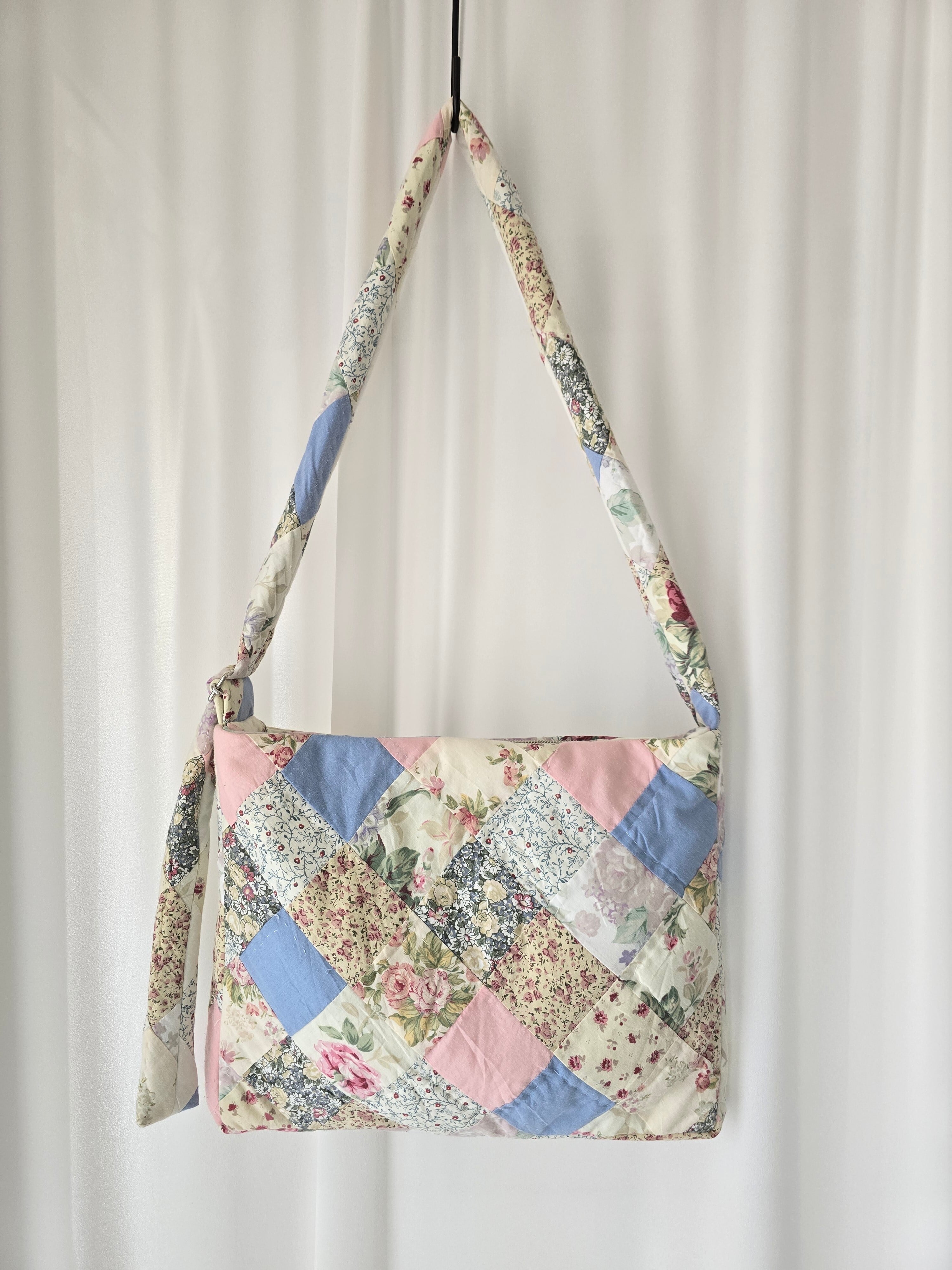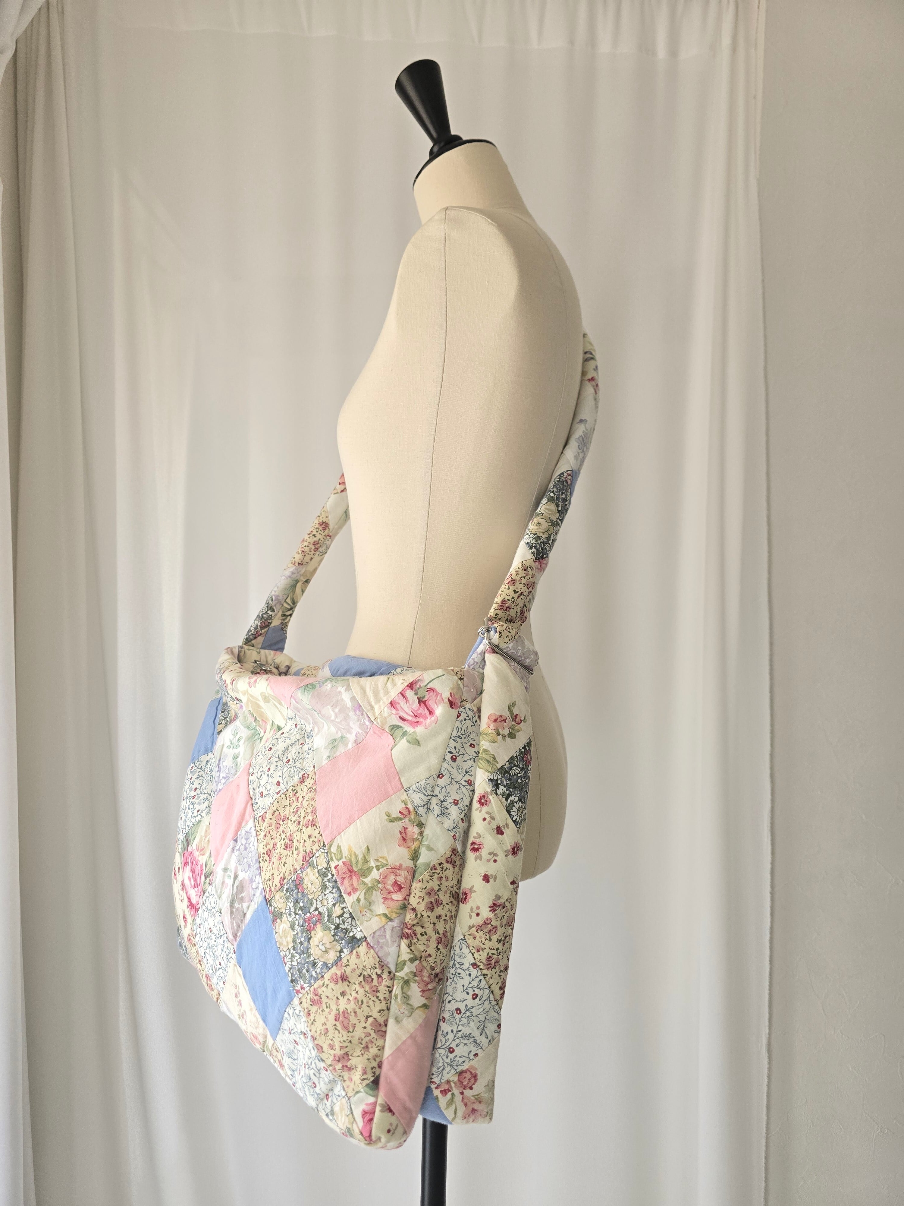 vintageのキルトを使用して大切にお作りしました1点もののバッグ。