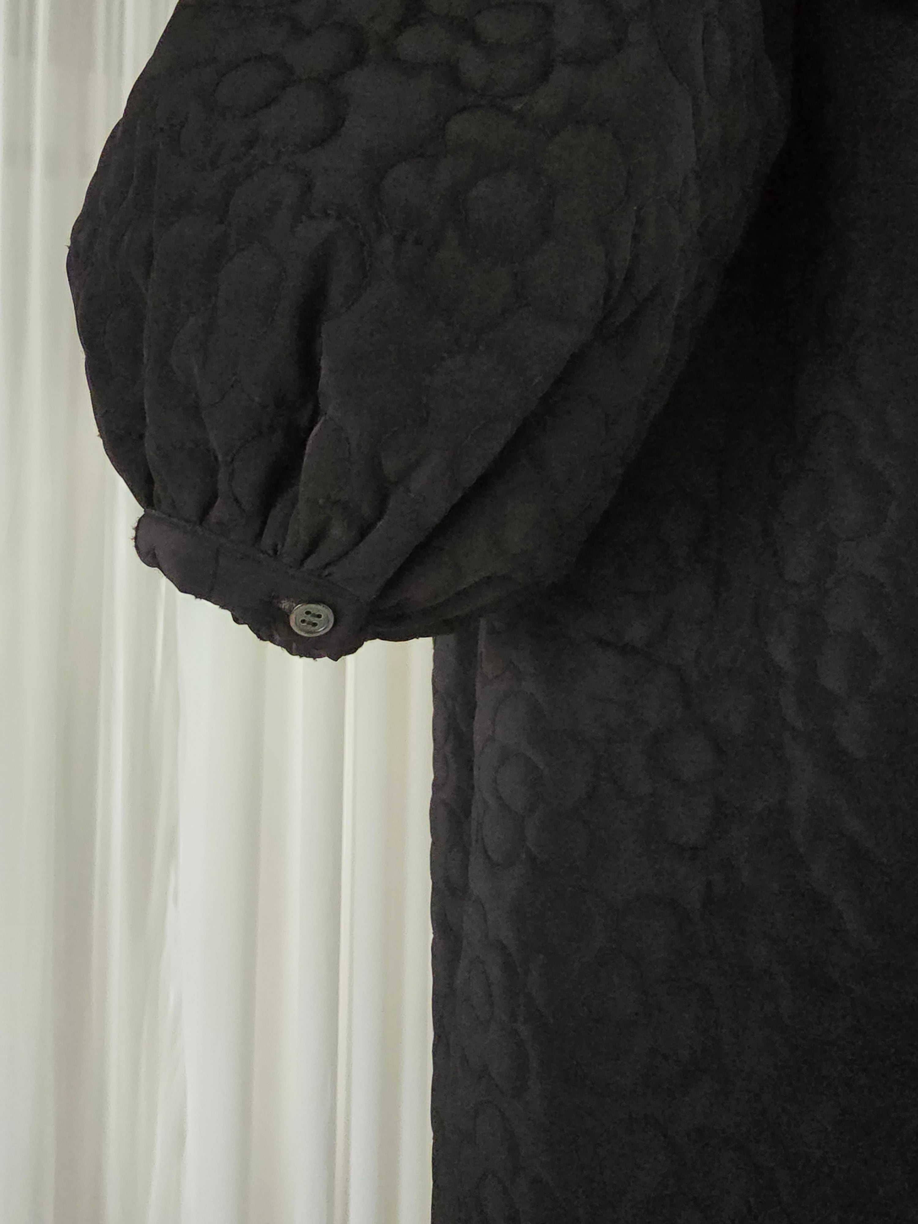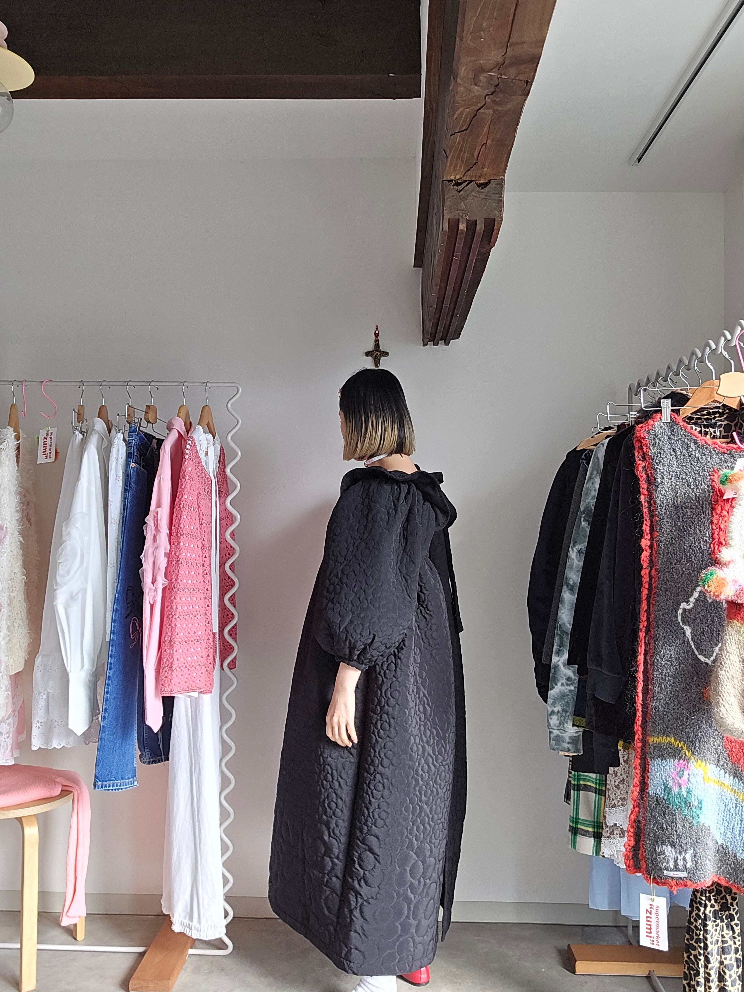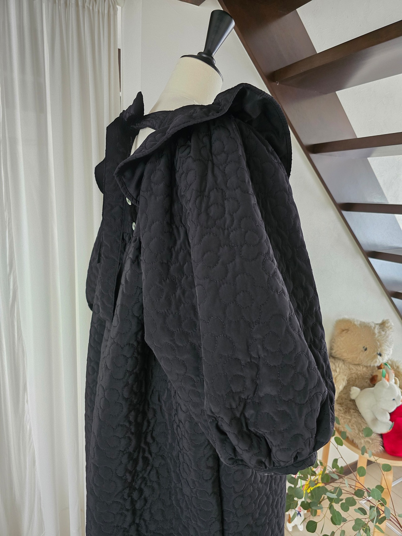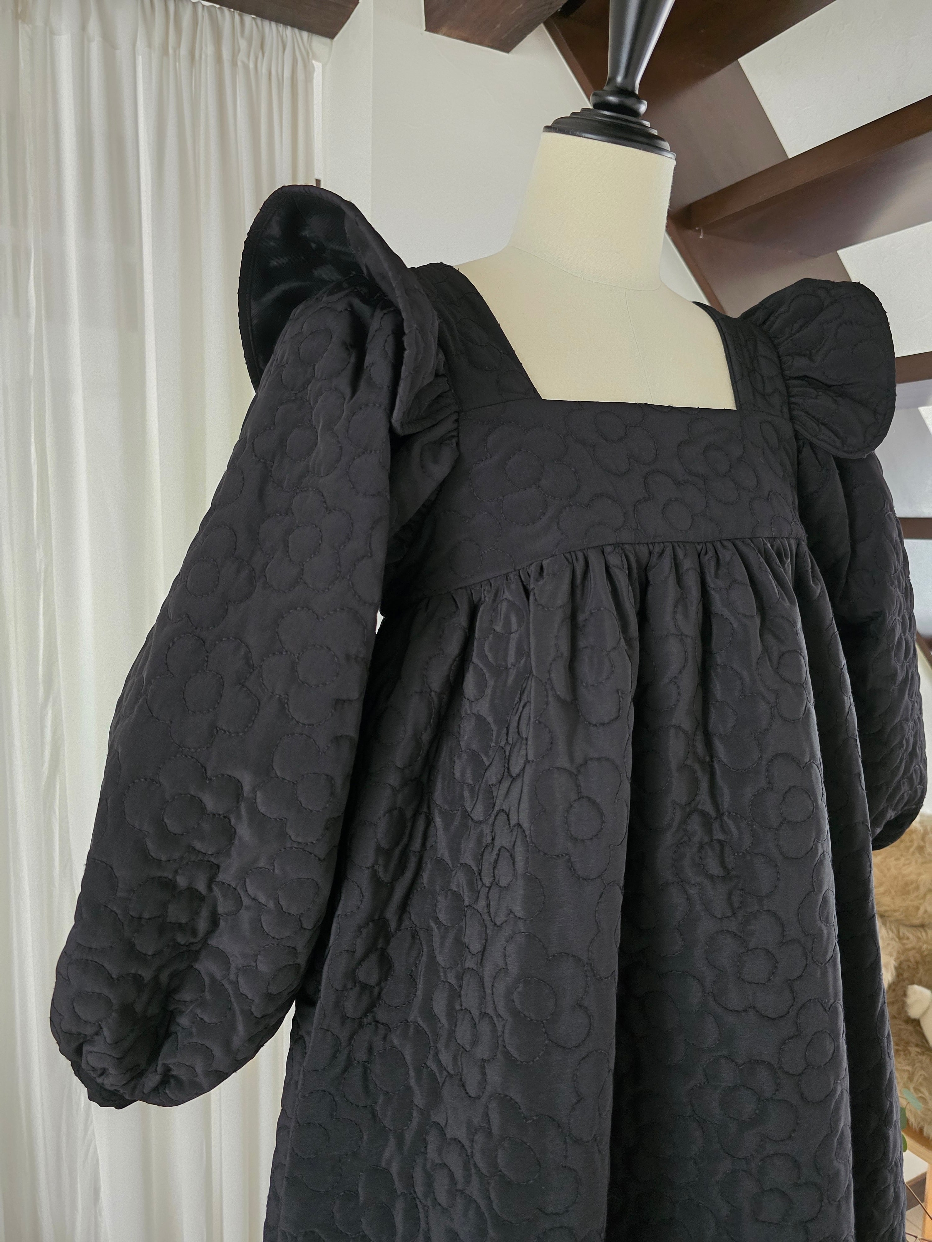 naoki tomizuka オリジナルの大小お花のキルティング生地の後ろ開きドレス。